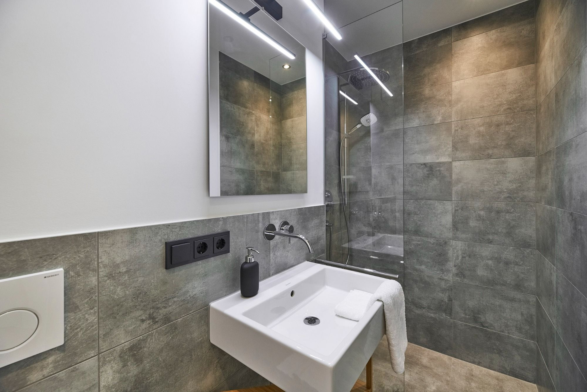 Ein Hauptbad mit bodentiefer Dusche (90x130cm) sowie ein Gäste-WC mit ebenfalls integrierter Dusche (90x110cm) stehen euch zur Wahl.