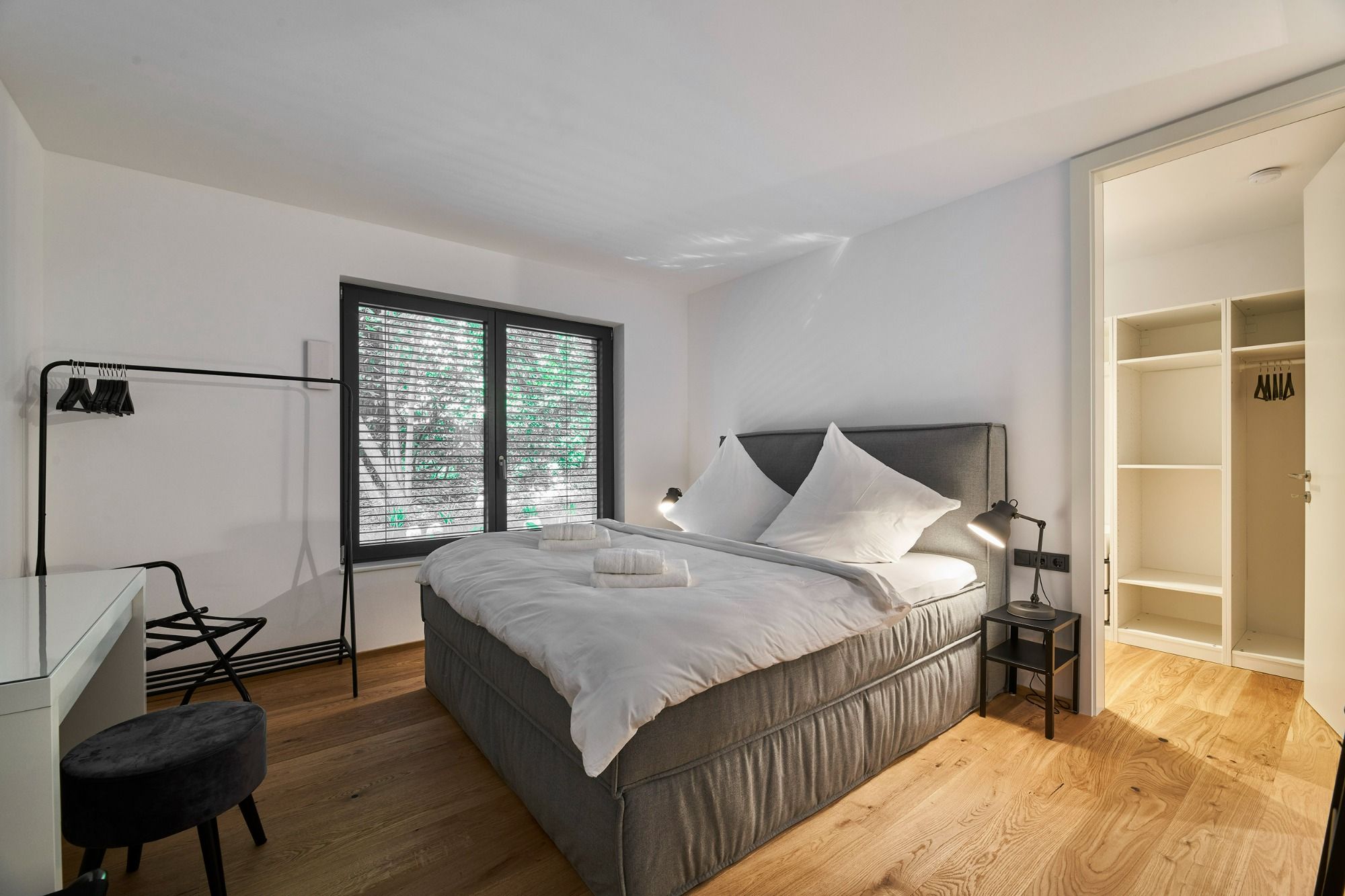 Ein großzügiges 20qm Schlafzimmer mit integrierter Ankleide und einem 180x200cm Boxspringbett sorgt für absolutes Wohlfühlambiente.
